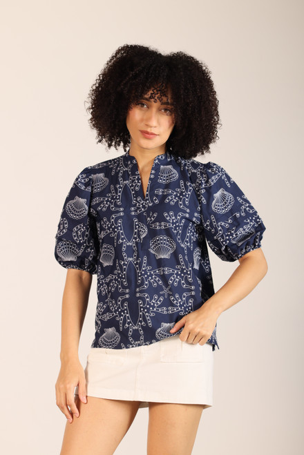 V neck with puff sleeves